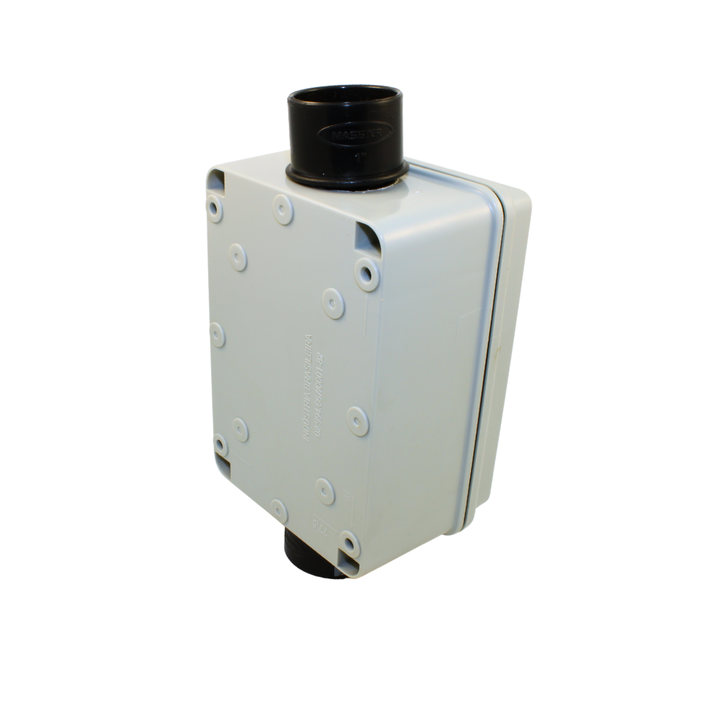 Característica: Fabricada em termoplástico industrial de alta resistência, possui formato retangular com tampa removível fixada por parafusos metálicos. O termo “suspensa” (ou de sobrepor) indica que ela é fixada diretamente na face externa da parede, dispensando a quebra de alvenaria para embutimento.