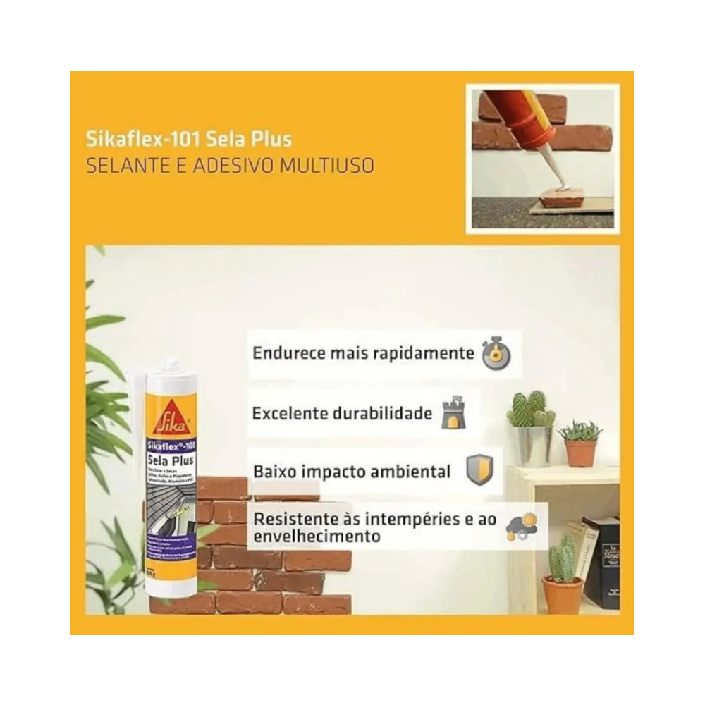 Material: Poliuretano (PU). Diferente dos silicones acéticos, o Sikaflex 101 não é corrosivo, o que o torna seguro para uso em contato direto com aço galvanizado, alumínio e outros metais do sistema de proteção.