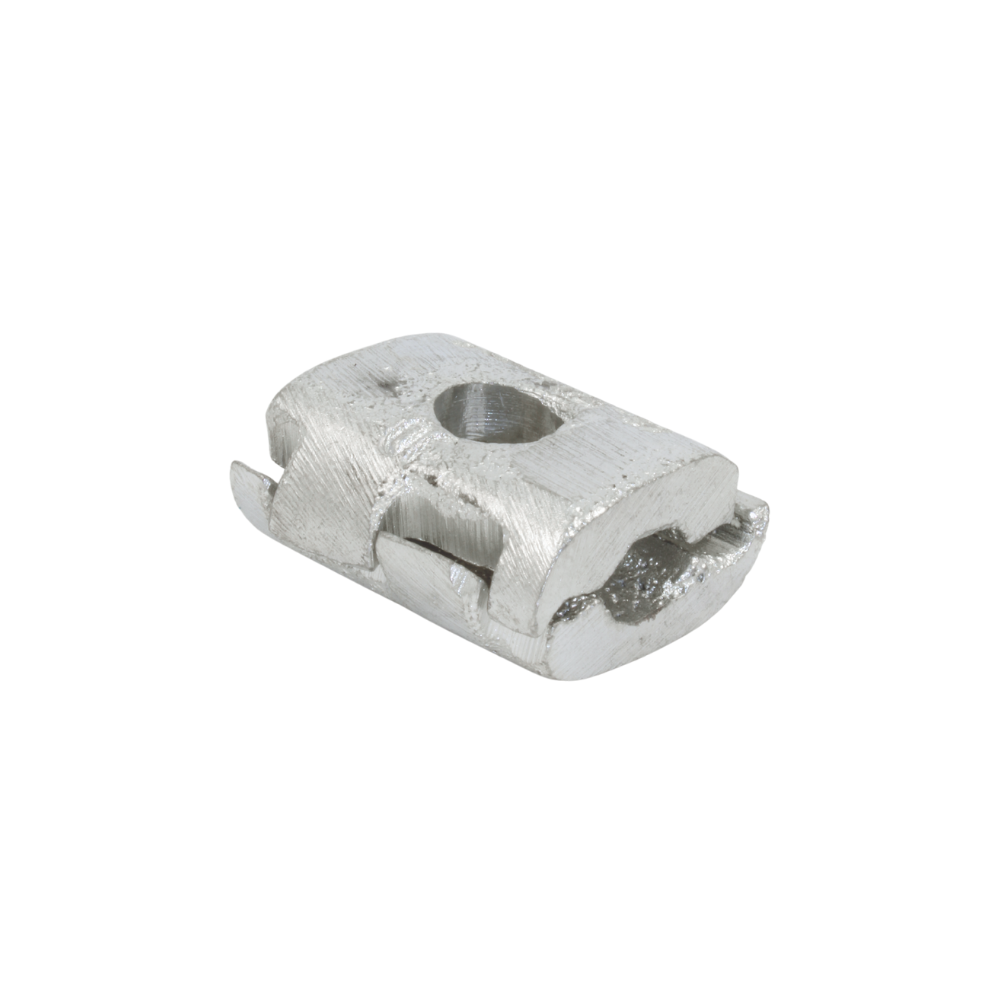 Característica: Design tipo “mordente” com fenda de encaixe específica para fios de gradil, garantindo alta pressão de contato mecânico.