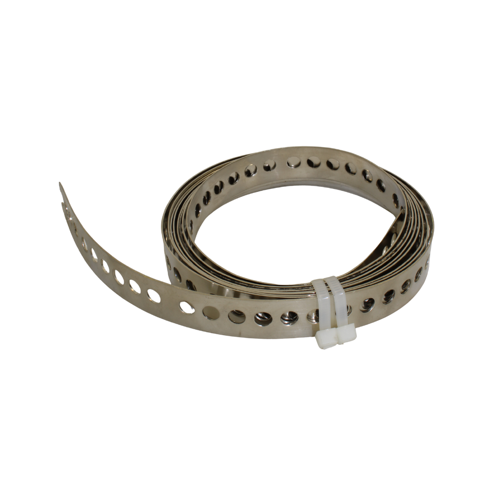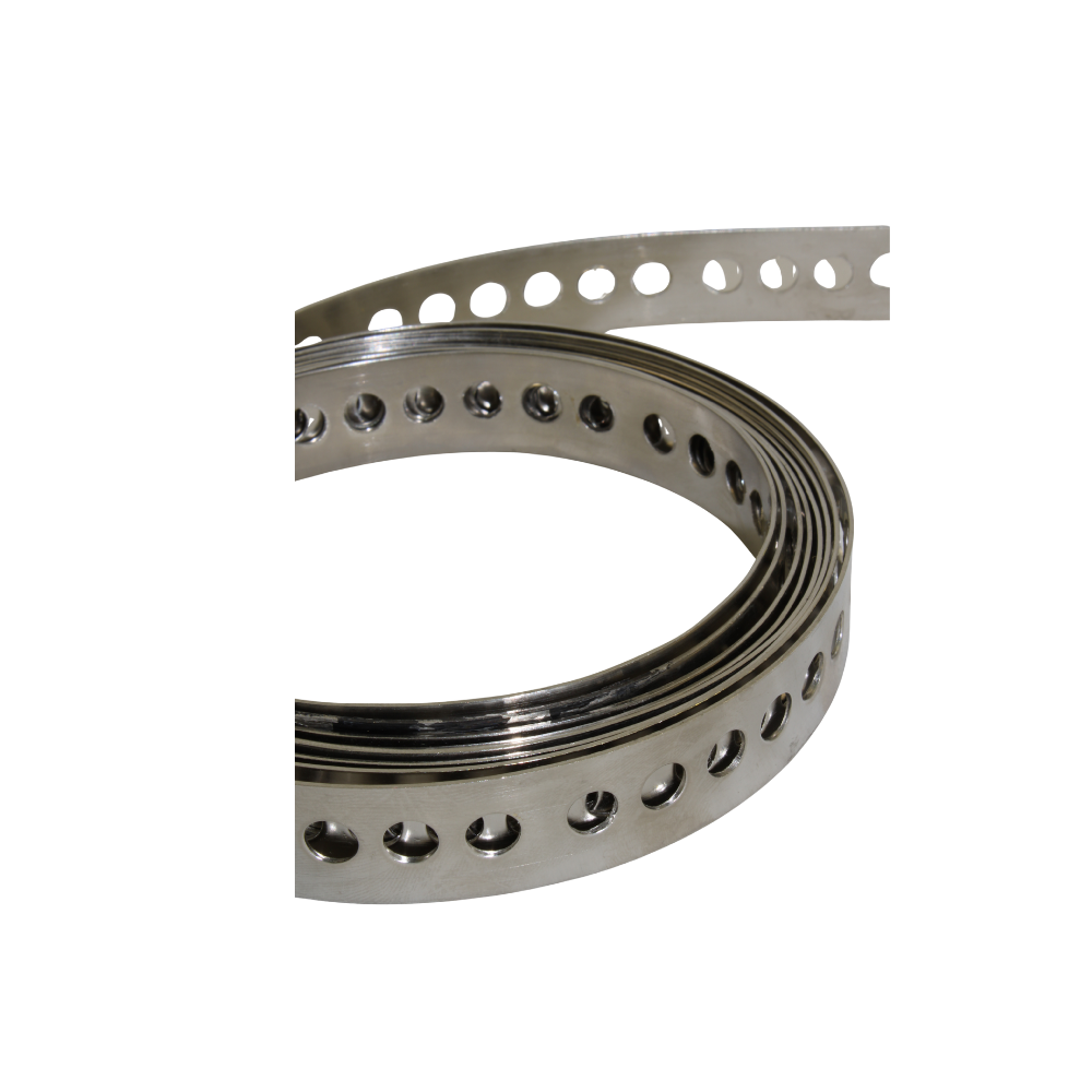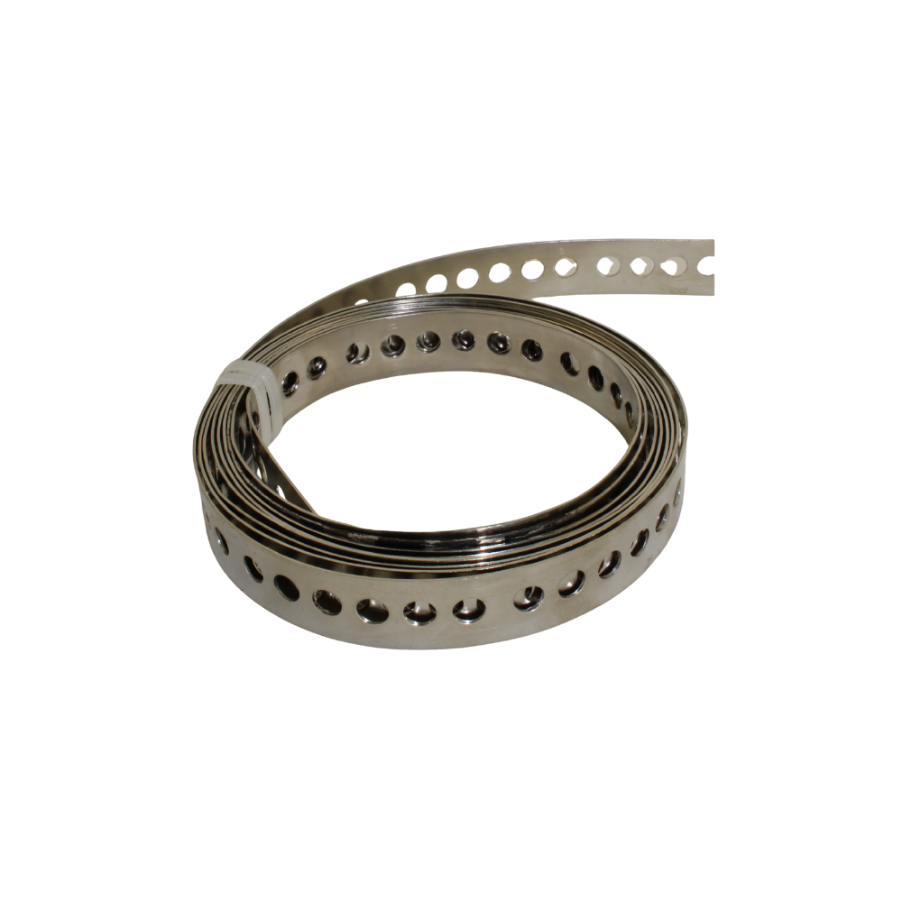 Características: Fita metálica flexível com perfurações sequenciais, fornecida em rolo de 3 metros.