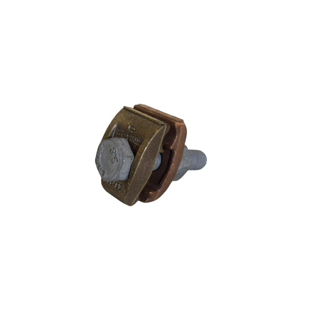 Material: Grampo em bronze, parafuso em liga de cobre ou aço galvanizado a fogo.