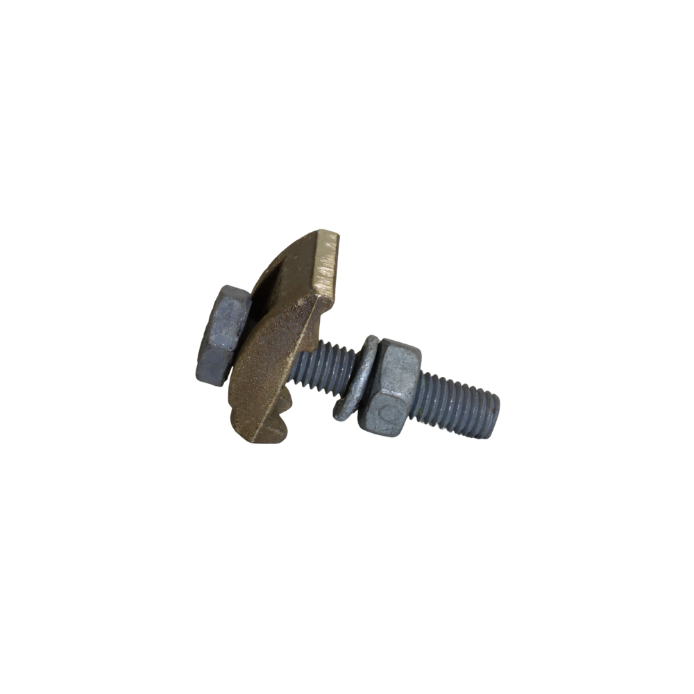 Material: Grampo em bronze, parafuso em liga de cobre ou aço galvanizado a fogo.