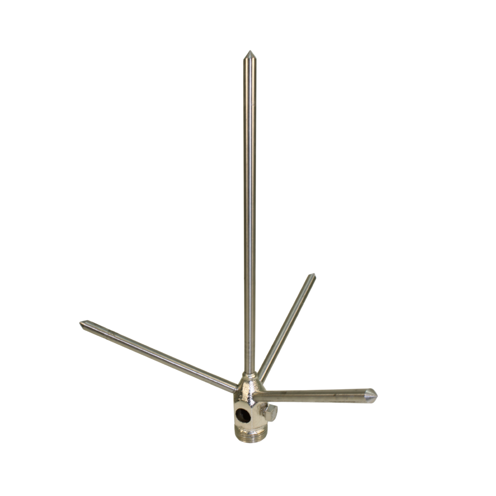 Características: Possui 4 hastes pontiagudas (1 central maior e 3 laterais) para facilitar a atração do raio.