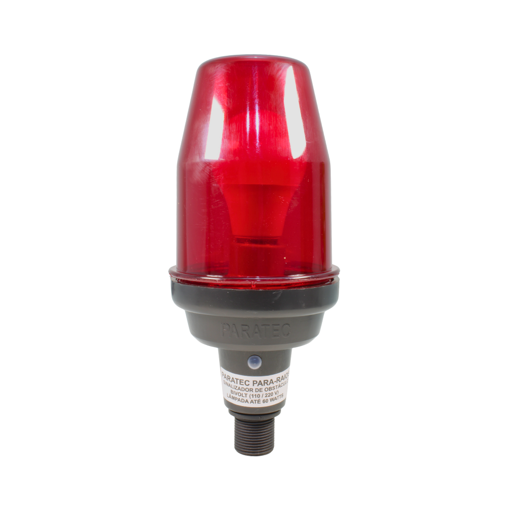 Característica: Modelo bivolt projetado para uso com lâmpadas incandescentes ou LED (base E-27). O controle de acionamento deve ser feito externamente (via relé fotoelétrico comum ou interruptor no quadro de comando). Isso evita que cada sinalizador ligue em horários diferentes devido a sombras localizadas.