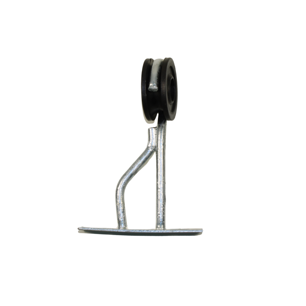Característica: Composto por um anel isolante de polímero montado na extremidade de uma haste metálica, cuja base possui uma chapa de encosto plana. Essa chapa permite uma fixação mais estável e robusta do que os modelos de rosca simples.