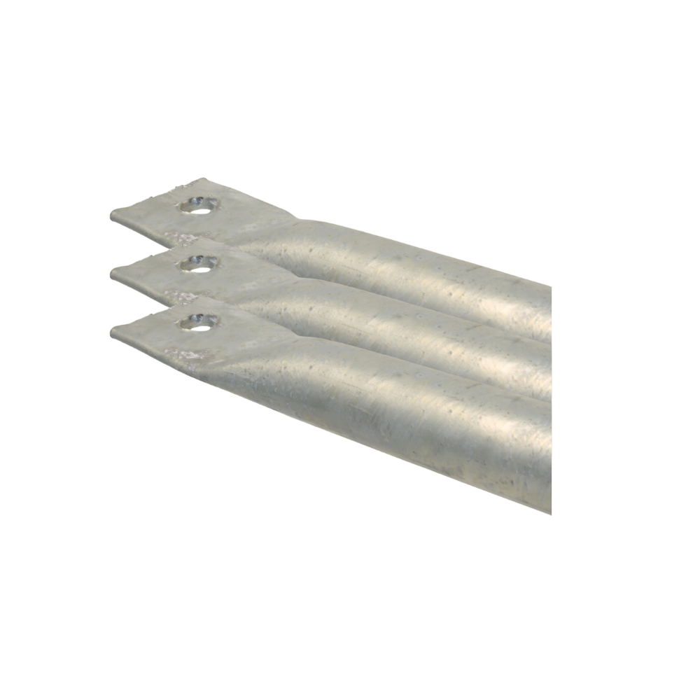 Finalidade: Atuar como elemento estrutural de ancoragem em sistemas de estaiamento para mastros de SPDA. A função da “perna de estais” é elevar o ponto de ancoragem, permitindo o correto ângulo de abertura garantindo a estabilidade mecânica do mastro contra esforços de ventos intensos.